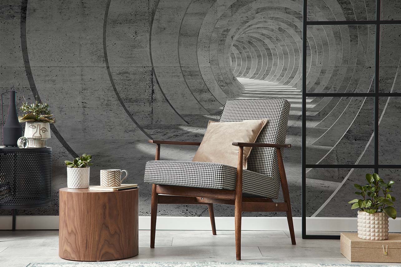 Wer ein eher kleines Wohnzimmer einrichten möchte, der sollte bei der Einrichtung darauf achten, dass die Weite des Raumes optisch vergrößert wird. Andernfalls stellt sich hier schnell ein unangenehmes Gefühl der Enge ein. Mit 3D Tapeten lässt sich die klare Raumbegrenzung durch eine Wand optisch aufbrechen. Ein Beispiel einer solchen 3D Tapete im Wohnzimmer ist ein Tunnelmotiv, welches den Raum optisch streckt. Bei dem verwendeten Fotomotiv kann es sich um einen Tunnel mit hellen und antik anmutenden Säulen, um einen Holztunnel oder ähnliches handeln. Vor dieser Wand ist der ideale Stellplatz des Sofas oder zweier gemütlicher Sessel.