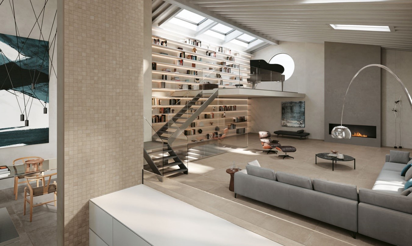 Optische Raumzonen mit Fliesenmosaiken